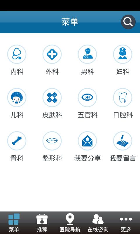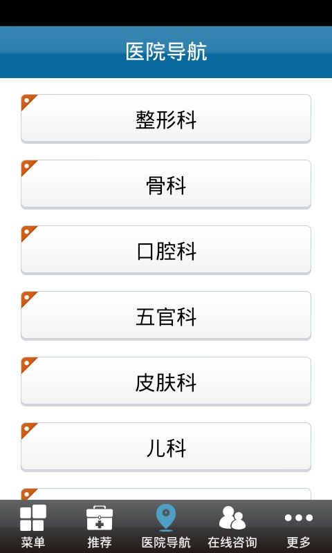 掌上医院app手机客户端提供包含内科、外科、男科、妇科、儿科、皮肤科、五观科、口腔科、骨科、整形科等各热门科室医院在内的导航,用户查找到自己需要的医院时, 可以直接通过客户端进行手机拨号预约,还可以通过手机进行地图导航。 提供短信、微博、微信分享功能,方便用户将有用的信息分享给身边需要的朋友。同时,用户在使用中有相关建议还可以直接进行留言反馈。